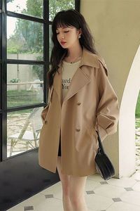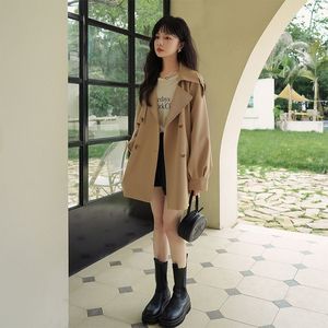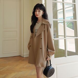 英伦风中长款外套女宽松春装新款韩版小个子大衣百搭休闲风衣