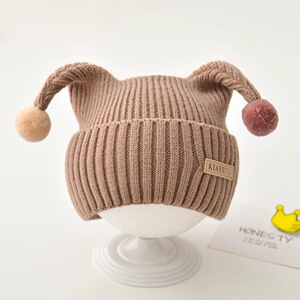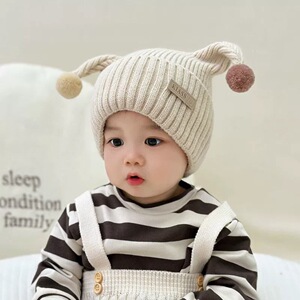 婴儿帽子秋冬季韩版可爱触角针织帽男女宝宝护耳毛线帽搞怪小丑帽