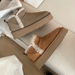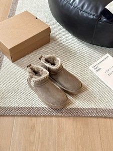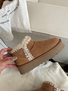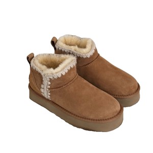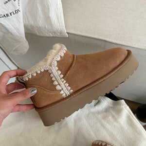 河南桑坡雪地靴鞋女士羊皮毛一体厚底一脚蹬加厚毛线编织迷你短靴