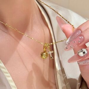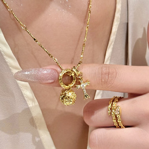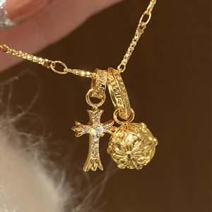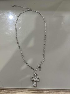 中古vintage圆珠十字架项链轻奢高级感小众锁骨链时尚气质项饰女