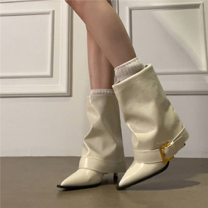 牛皮版~英伦风气质温柔辣妹时装靴女皮带扣裤管靴高跟百搭小短靴