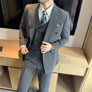 FW10835 2025主推高品质色织暗条纹戗驳领双排扣西服三件套男士