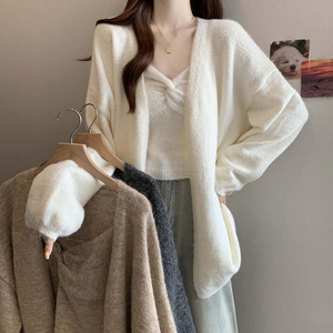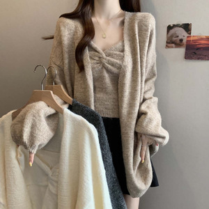 2025秋冬新不规则背心披肩毛衣短款针织套装大码百搭显瘦两件套