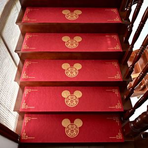 一次性结婚地毯家用台阶踏步楼梯地垫防滑婚礼婚背胶自粘大红色
