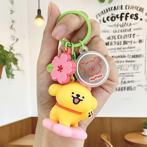 春日樱花线条小狗钥匙扣粉色卡通情侣包包挂件生日小礼物娃娃机