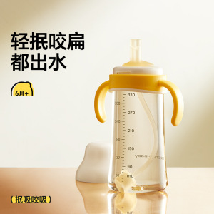皇宠2.0好吸杯奶瓶0到6个月带吸管防胀气防摔大宝宝鸭嘴喝水杯