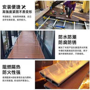 铝合金地板 户外阳台花园庭院地板铝合金仿木纹地板铝质地板直铺