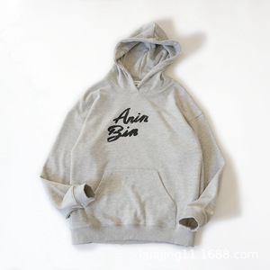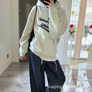 海外服装批发AB女装2025新款草写字母印花连帽廓形复古卫衣男女
