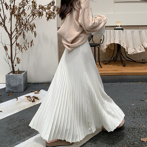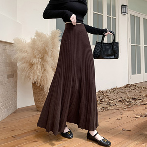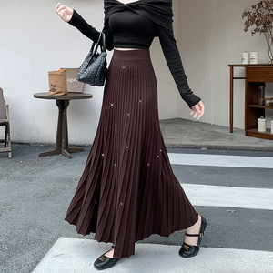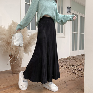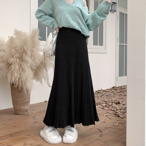 针织百褶半身裙女秋冬A字垂坠感亮片长裙设计感遮肉显瘦大摆裙