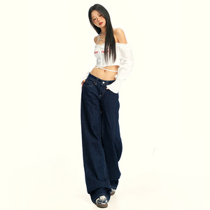 美式复古原牛色低腰牛仔裤女2025秋季新款宽松阔腿显瘦百搭直筒裤