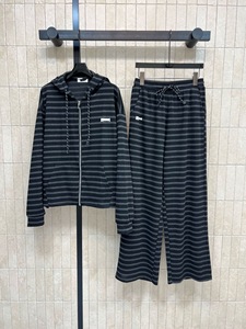 25秋季M家款条纹休闲套装 刺绣logo贴布连帽拉链外套+高腰长裤