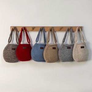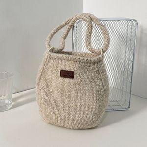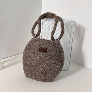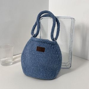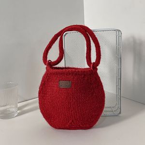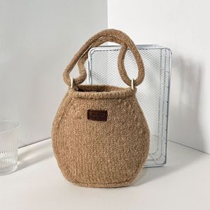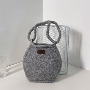 针织单肩包百搭韩系慵懒风手提包软糯绒面水桶包针织毛线包包批发