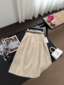 25秋季新款女士腰带中长款百搭复古A字裙显瘦长裙半身裙0828s10