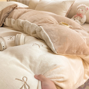 加厚纯色牛奶绒三四件套小清新双拼冬季珊瑚绒双面绒床单款套件