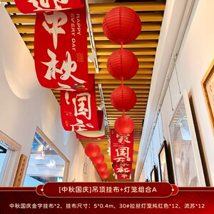 十一国庆节布置装饰中秋商场超市店铺活动氛围场景挂饰长条幅挂布