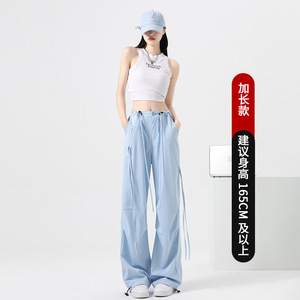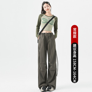 系带设计感工装裤女夏秋窄版阔腿休闲裤高腰抽绳运动伞兵裤子女款