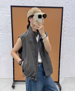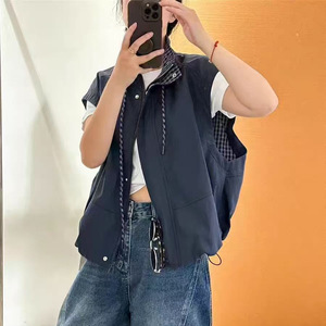 立领马甲 2025秋季新款 韩版抽绳下摆上衣马夹女拉链无袖外套2967