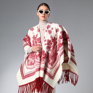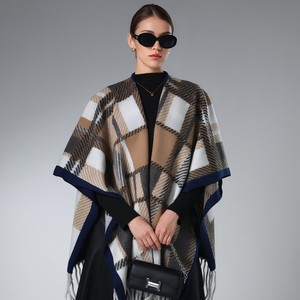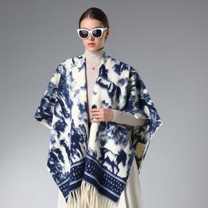 她信服饰跨境外贸秋冬披肩条纹国风水墨佩斯利蛇纹豹纹流苏斗篷
