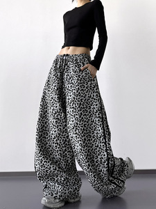 经典设计豹纹休闲裤女2025春秋装新款高腰高个子学生街舞阔腿裤