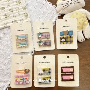 niannian韩系格纹蕾丝碎花发夹甜美布艺刺绣BB夹儿童边夹刘海夹