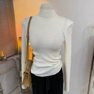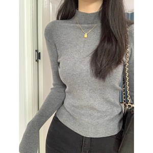 秋冬半高领紧身毛衣打底衫女春秋2025新款加绒内搭上衣冬季针织衫