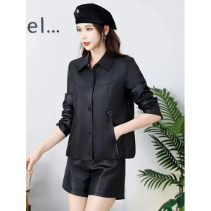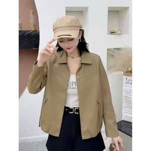 海宁短款皮衣外套女2025春秋季皮衣外套新款洋气减龄显瘦百搭上衣