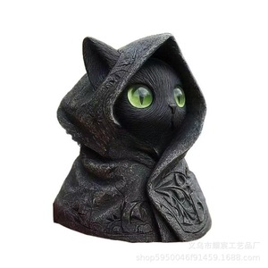 独立站爆品Mysterious Hooded Cat Figurine,神秘的连帽猫雕像