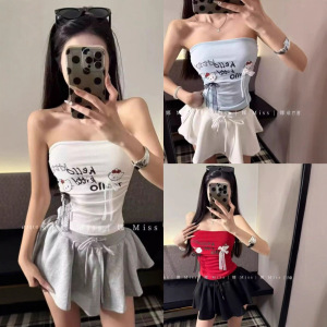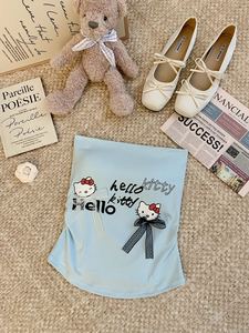 人棉Kitty猫印花蝴蝶结无袖抹胸背心女夏修身辣妹美背短衣外穿潮