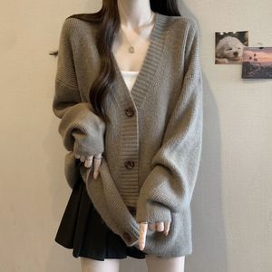 复古毛衣开衫女大码微胖mm春秋慵懒风高级感V领针织外套上衣