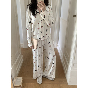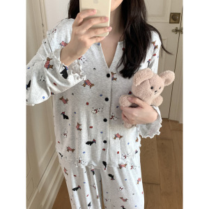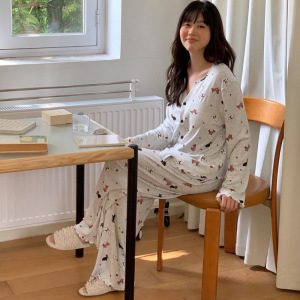 2025ins秋冬针织莫代尔韩系小狗V领居家外穿睡衣套装带胸垫