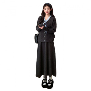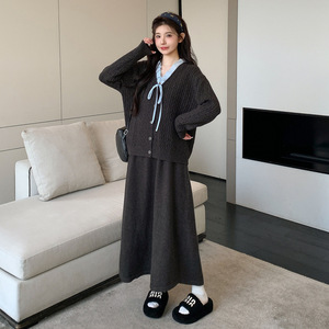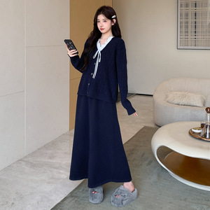 现货2025秋冬加厚v领开衫孕妇毛衣+半身裙针织套装孕妇两件套