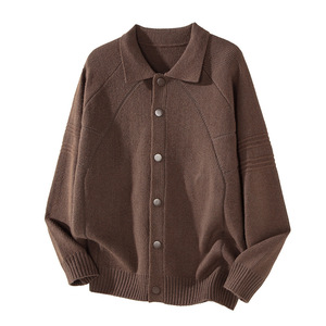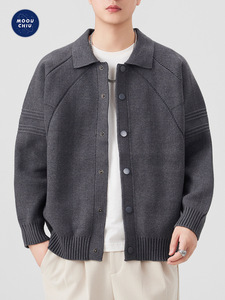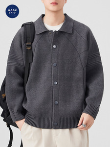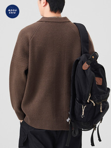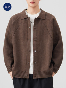 沐丘男装∣秋冬新款美式复古针织衫开衫外套男翻领休闲慵懒风毛衣