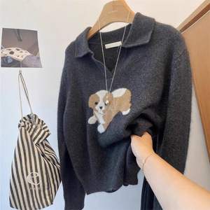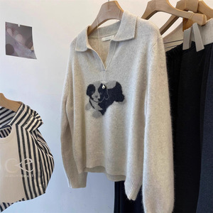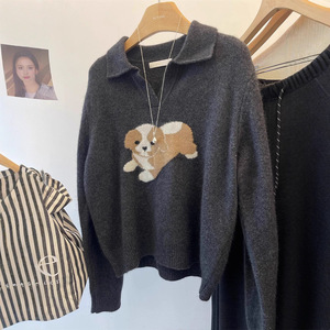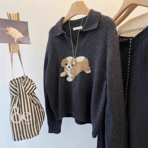 韩系灰色polo领羊绒针织衫上衣修身短款内搭打底衫翻领毛衣女秋冬
