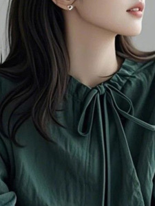 绿色蝴蝶结系带衬衫女高级感轻奢减龄洋气复古港风多巴胺穿搭上衣