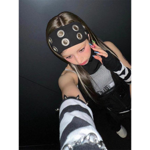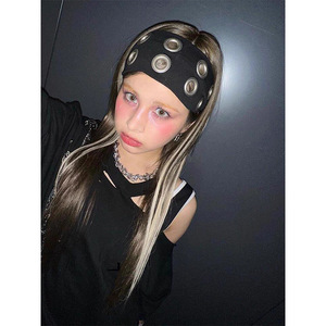 跨境欧美朋克风发带复古时尚金属摇滚风头饰宽边弹力透气束发带女