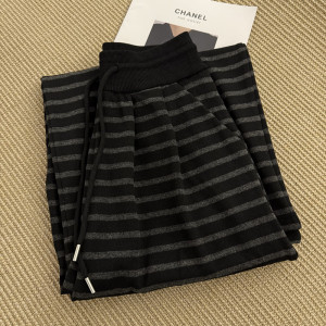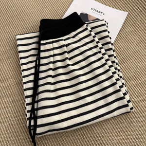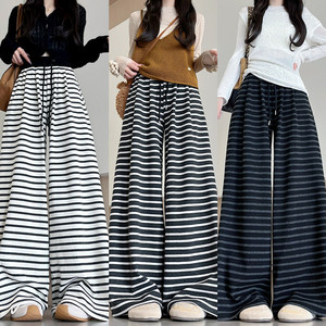 2025新款小个子条纹阔腿裤女高腰抽绳显瘦百搭直筒拖地休闲裤子显