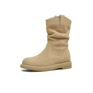 牛皮版~内增高复古短靴女2025秋冬黄金V西靴圆头软底时装堆堆靴