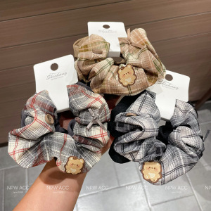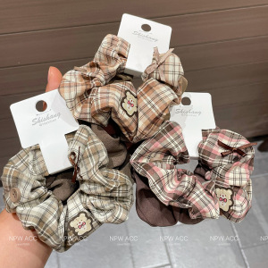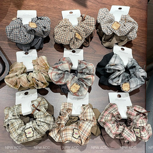 秋冬深色系格子发圈两件套卡装大肠发圈贴标可爱学生大号肠圈发饰