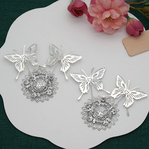 立体双层镂空蝴蝶花边圆形装饰配件diy镂空蝴蝶发簪发夹配件饰品