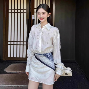 服装店小丝巾系腰方巾藏青腰果丝巾女搭配风衣装饰领巾民族风丝巾