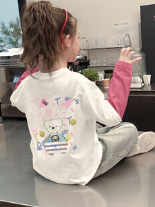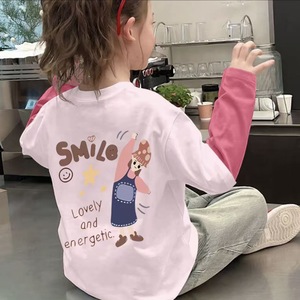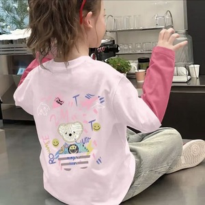 儿童新款撞色拼接宝宝内搭长袖T恤卡通中大童春秋纯棉打底上衣潮