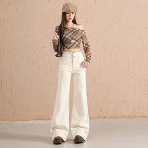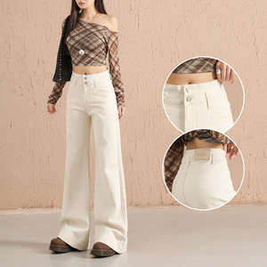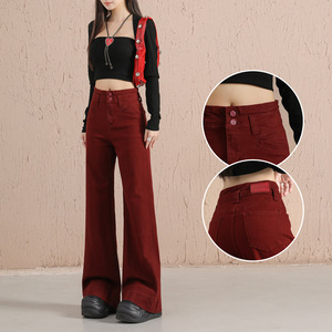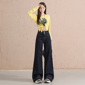复古高腰垂感牛仔裤女长裤秋冬季新款宽松显瘦排扣弹力拖地喇叭裤