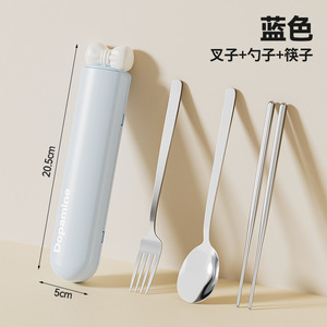 304不锈钢便携餐具筷子勺子套装上班族学生多巴胺餐具三件套旅行
