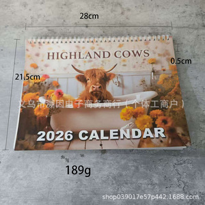 新品2026 年高地牛挂历年度计划月度记事本家庭办公室装饰