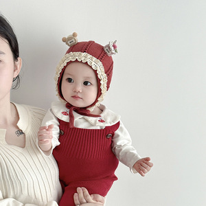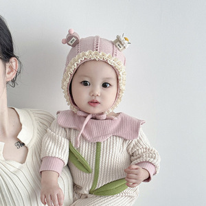 婴幼儿帽子秋冬季保暖针织护耳帽可爱女宝宝小月龄防风毛线胎帽韩