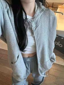 (源头工厂现货)ALO反光logo连帽拉链口袋宽松百搭经典卫衣外套