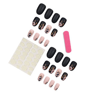 跨境 秋冬树叶欧美穿戴甲杏仁甲美甲甲片中长款假指甲片批发