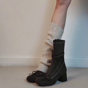 绒面版~法式温柔芭蕾风粗跟瘦瘦靴蝴蝶结侧拉链显瘦百搭女弹力靴