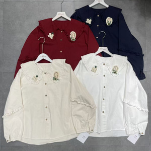 学院风森系花边娃娃领长袖衬衣女2025秋季新款简约文艺百搭上衣女