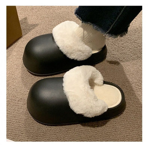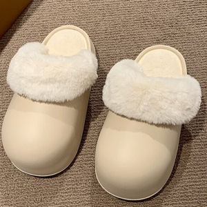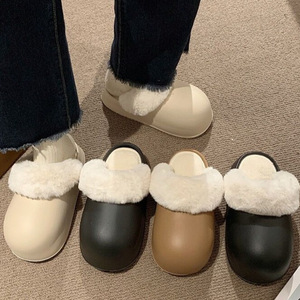 可拆卸冬季保暖防风纯色简约可拆洗厚底包头外穿居家加绒棉拖批发